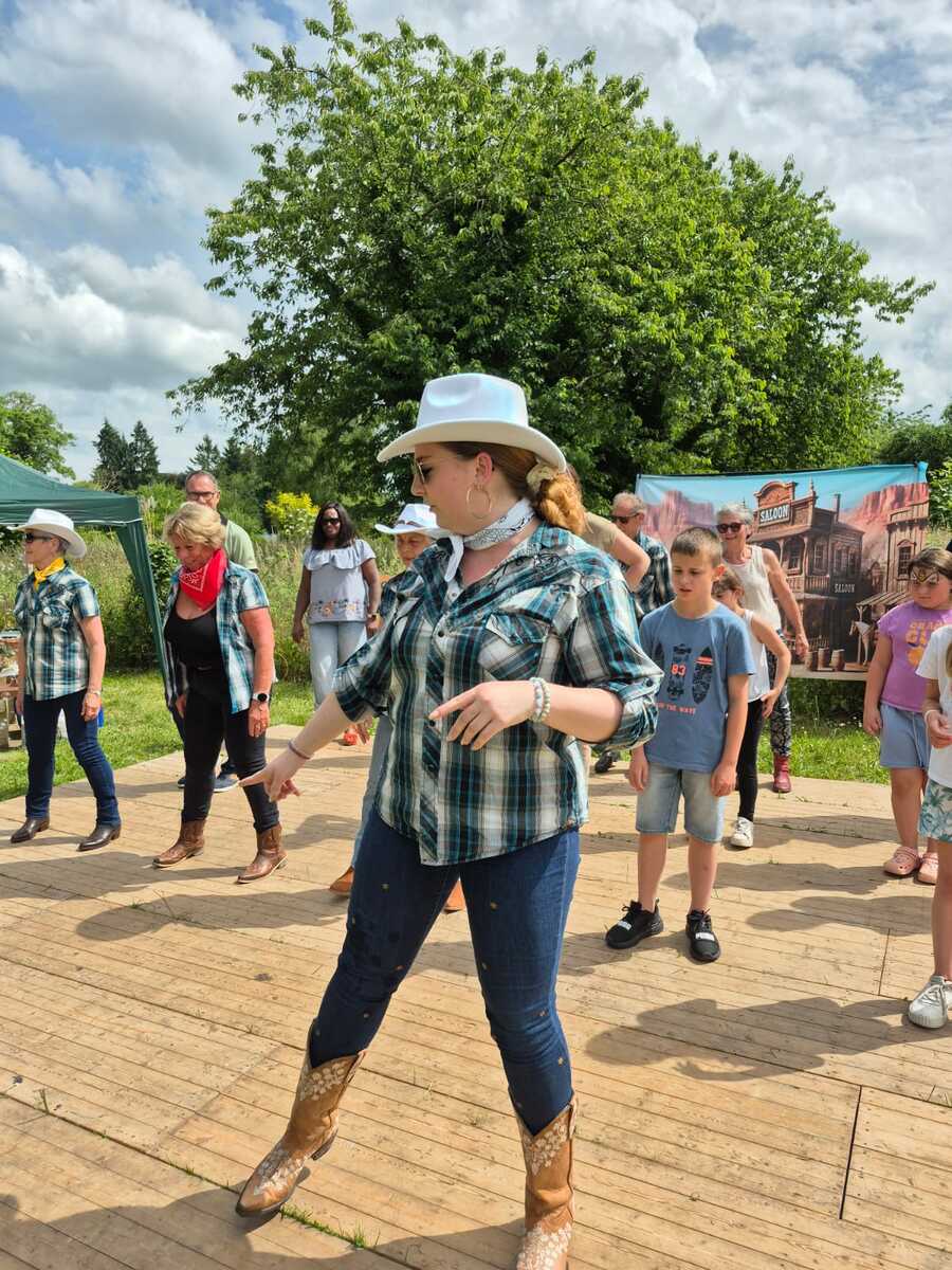 Une après-midi radieuse animée par le club et un public ravi d''apprendre une danse en ligne. Bravo à tous les participants !