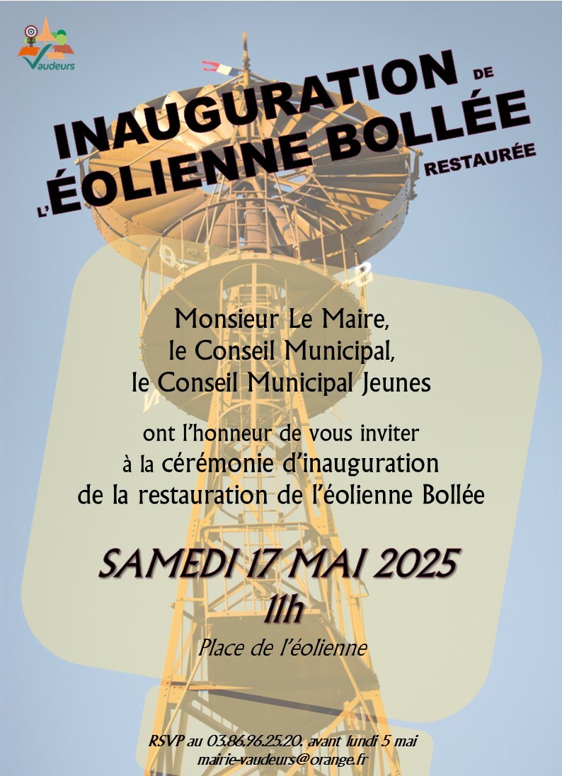Fête de l'éolienne de Vaudeurs samedi 17 mai 2025